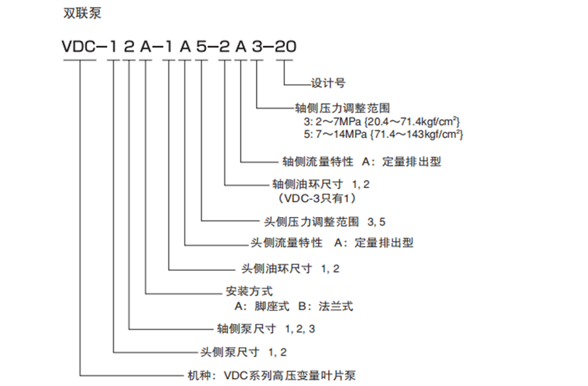 不二越VDC系列高壓變量葉片雙聯(lián)泵型號說明: