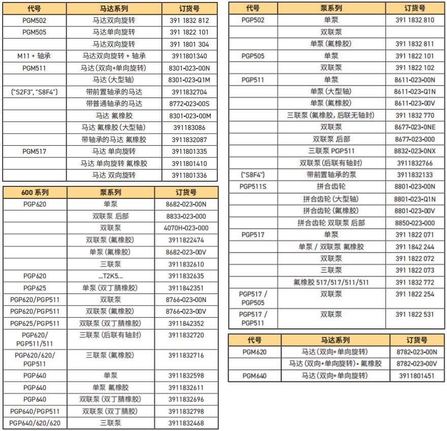 派克齒輪泵PGP系列相關型號: