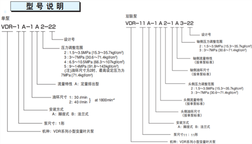 不二越VDR22設(shè)計(jì)系列變量葉片泵型號(hào)說明:
