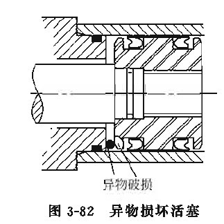 當(dāng)活塞運(yùn)動(dòng)速度很快時(shí),一且緩沖機(jī)構(gòu)失靈或無緩沖,在采用限位行程電氣元件控制失靈時(shí),活塞以髙速與缸蓋發(fā)生沖撞,將特別容易引起活塞在外圓以及內(nèi)圓倒角處的變形而致?lián)p壞。如果是鑄造脆性材料,易引起顆粒脫落,若材料中有缺陷,則會(huì)成小片、小塊狀脫落,進(jìn)而拉壞活塞外圓表面、密封件及缸筒內(nèi)孔。